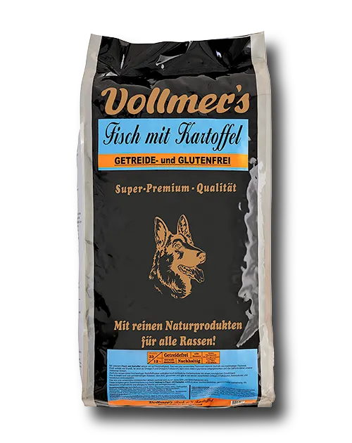 Mit unserem getreidefreien Futter „Fisch mit Kartoffel“ setzen wir auf Nachhaltigkeit. Das von uns hierfür verwendete Weißfischmehl stammt daher aus nachhaltiger Fischerei aus der Nord- und Ostsee. Es besteht aus Kabeljau, Schellfisch und Seelachs. Fisch enthält viel Eiweiß, ist reich an Omega-3 und Omega-6 Fettsäuren, kann den Alterungsprozess verlangsamen und die Gehirnfunktion unserer Vierbeiner fördern.